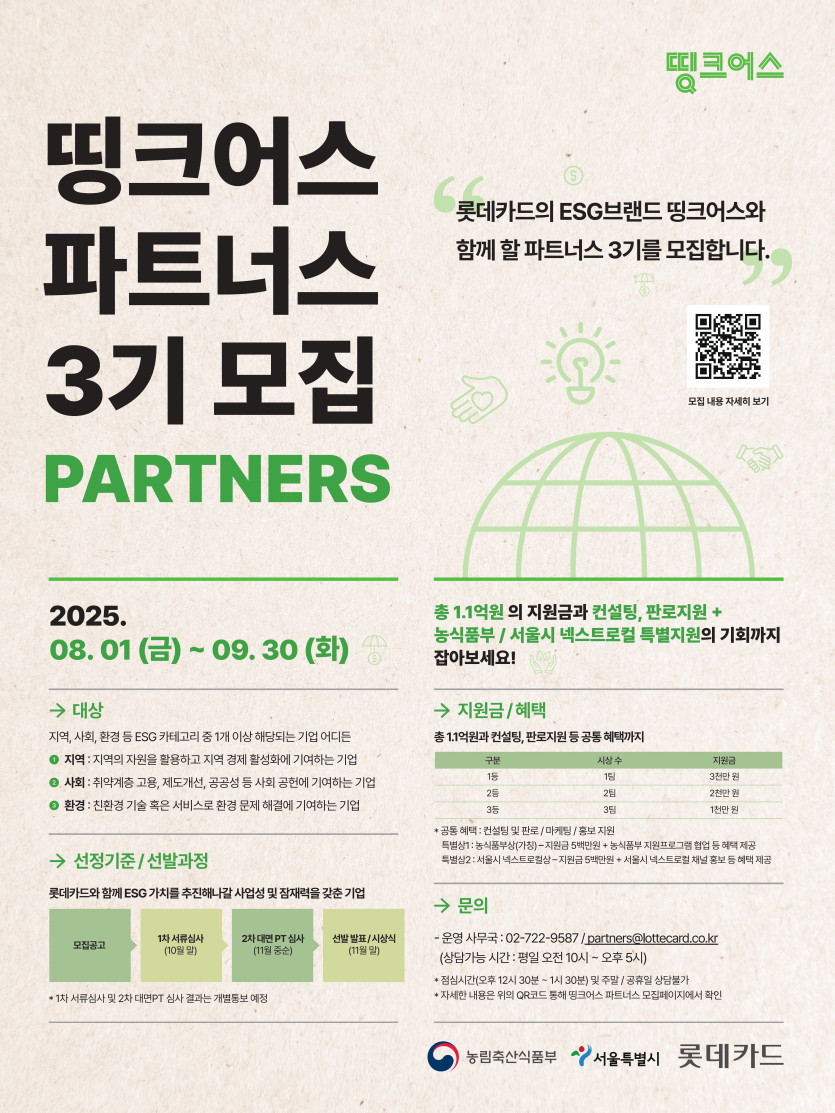 [롯데카드] 2025 띵크어스 파트너스 3기 모집 (~9/30)