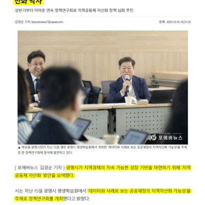 광명시, 공공재정 지역경제 선순환 방안 논의…지역공동체 자산화 박차