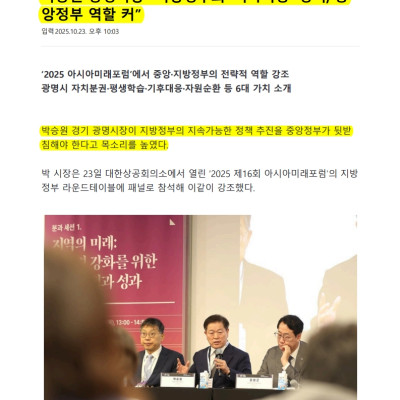 박승원 광명시장 “지방정부의 ‘지속가능’ 정책, 중 앙정부 역할 커”