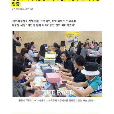 광명시, 사회적경제 활성화 우수 자치단체 선정…‘광 명형 모델’로 지역혁신 앞장