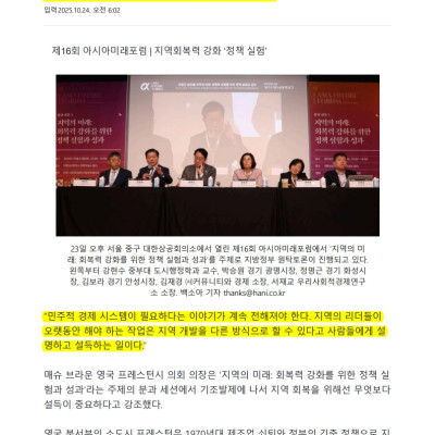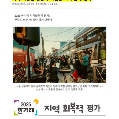 “회복력은 지역의 생존력”…한겨레 지역 회복력 평가 시상식 열려
