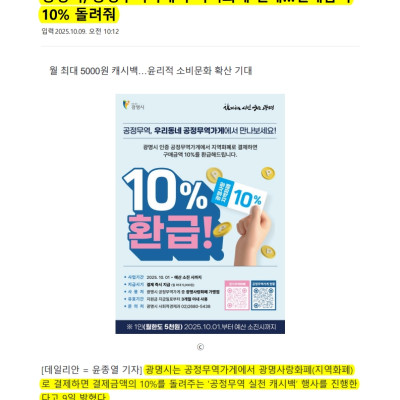 광명시, 공정무역가게서 지역화폐 결제…결제금액 10% 돌려줘