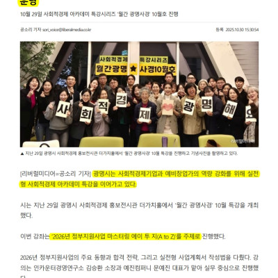 광명시, 사회적경제기업 성장과 창업 역량 강화 위한 실전 특강 운영