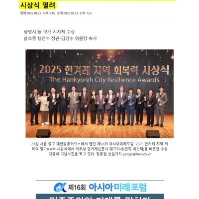 ‘지역 회복력’ 으뜸 광명시…민관 협력 뿌리내리다