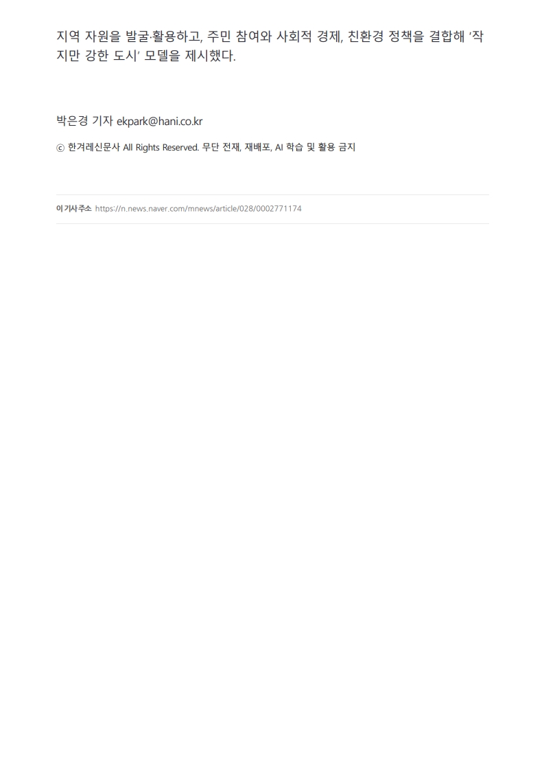 지속 가능한 성장의 비결은 지역 안에 있다 페이지 정보 작성자 최고관리자 댓글 0건 조회 27회 작성일25-10-17 09:28 본문 . 댓글목록 댓글목록 등록된 댓글이 없습니다. 목록