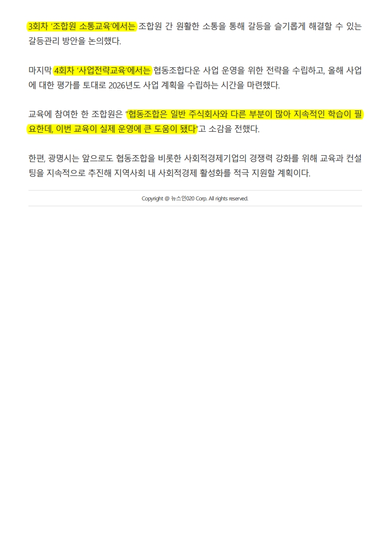 광명시, 협동조합 운영 역량 높인다… 역량강화 교육 마무리 페이지 정보 작성자 최고관리자 댓글 0건 조회 118회 작성일26-01-05 11:34 본문 . 댓글목록 댓글목록 등록된 댓글이 없습니다. 목록