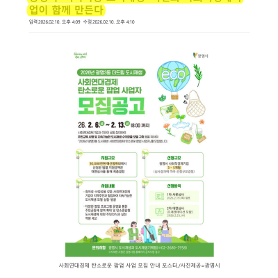 광명시, ‘2026 사회연대경제 창업 아카데미’ 수강생 모집