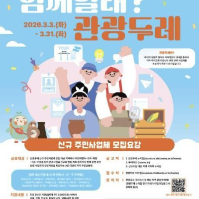 '우리동네 맛집·체험을 관광 코스로!' 광명 관광 이끌 '관광두레' 주민 공동체 모집